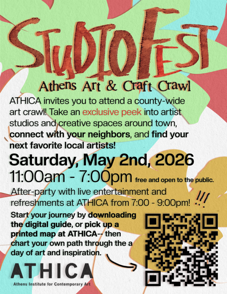 StudioFest is a day-long Athens-wide art and craft crawl. Think of it as PorchFest for artists of all kinds, shining a light on the creative community of Athens through opening artist studios, galleries, makers’ spaces, and pop-up exhibitions and markets to art lovers and explorers. The day-long art crawl will be free to the general public, with a map of all participating places available in print and online.